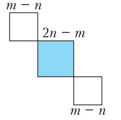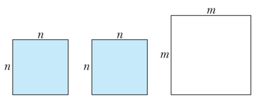 Եթե m-ը և n-ը ամբողջ թվեր են, կարո՞ղ է երկու n x n չափսի կապույտ քառակուսիների մակերեսների գումարը հավասար լինել m x m չափսի սպիտակ քառակուսու մակերեսին։