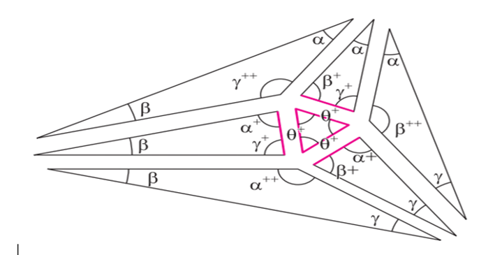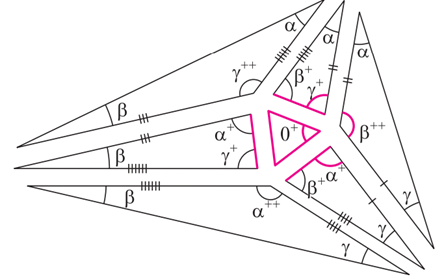 Վեց նոր եռանկյունիները կառուցելիս նախ որոշենք նրանց ձևը, ապա չափերը։ Ձևը որոշելու համար եկեք որոշենք անկյունները։ Ենթադրենք, α= A/ 3, β = B/ 3 և γ= C/ 3։ Նաև կատարենք հետևյալ նշանակումները՝ եթե θ-ը կամայական անկյուն է, ապա θ+ -ը նշանակում է + 60°, իսկ θ++-ը նշանակում է