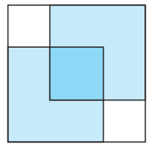 Մեծ քառակուսու մի մասը ծածկված է կրկնակի փոքր քառակուսիներով, իսկ մյուս մասը ընդհանրապես ծածկված չէ։ Նկ․ 2 -ում կրկնակի ծածկված հատվածը մուգ կապույտ գույնով է ներկված, իսկ չծածկված մասը՝ սպիտակ գույնով։ Քանի որ ի սկզբանե սպիտակ քառակուսու մակերեսը հավասար էր բաց կապույտ քառակուսիների մակերեսների գումարին, ապա կրկնակի ծածկված մասի մակերեսը ճիշտ հավասար պիտի լինի չծածկված մասի մակերեսին (նկ․ 3)։