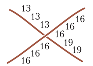 Այժմ պատրաստվում եմ ներկայացնել այն, ինչ ես անվանում եմ հանգույցների համարակալում: Համարակալում ստեղծելու համար հարկավոր է թելի յուրաքանչյուր տեսանելի հատվածին համապատասխան մի փոքր թիվ նշանակել. և որտեղ մի թել թաքնված է մյուսի տակ, ստորին թելի հատվածներում երկու թվերը պետք է միացված լինեն այնպես, որ կախված լինի վերին թելի հատվածի թվից (նկ․ 14):