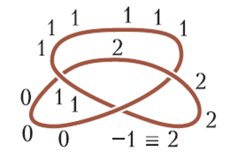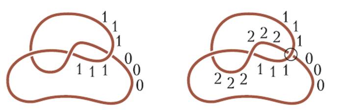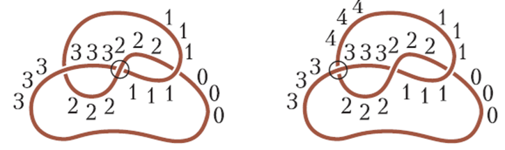 Վերադառնանք այն հարցին, թե արդյոք կարելի է երեքնուկը վերածել ոչ հանգույցի։ Ոչ հանգույցի համար կա ուղիղ երեք համարակալում (նկ. 20): Միևնույն ժամանակ, երեքնուկն ունի առնվազն չորս համարակալում՝ ամենուր 0, ամենուր 1, ամենուր 2, և համարակալումը, որը ներկայացված է նկար 21-ում։