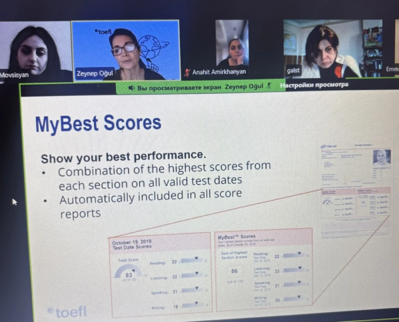 Այսօր անգլերենի իմացությունը բազում դռներ է բացում ինչպես ակադեմիական, այնպես էլ մասնագիտական աշխարհում։ Հատկապես, երբ արտասահմանում ուսման կամ աշխատանքի հնարավորություն ստանալու դեպքում TOEFL iBT (Internet-based Test) քննությունը, մշակված լինելով բարձր ակադեմիական չափանիշներով, համարվում է կարևոր միջոց՝ գնահատելու դիմորդի անգլերենի հմտությունները։ Ուստի TOEFL iBT-ի ուսուցիչների վերապատրաստման ծրագիրը, առաջարկելով դասընթացներ, աշխատարաններ, վեբինարներ և այլ միջոցառումներ, աջակցում է անգլերենի ուսուցչի մասնագիտական զարգացմանը և անհրաժեշտ հմտություններով զինում՝ ուսանողներին TOEFL iBT թեստին և համալսարանական միջավայրում սովորելուն պատրաստելու համար։ Միանալով անգլերենի մասնագետների գլոբալ համայնքին, կիսվելով մեր մտքերով, համատեղ գաղափարներով և օգտվելով արժեքավոր խորհուրդներից, ռեսուրսներից, նոր կապեր ստեղծելու հնարավորություններից և TOEFL iBT ծրագրի թարմացումներից՝ այս վերապատրաստումն ինքնակատարելագործման կարևորագույն միջոց էր։