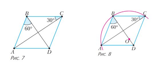 O կետը համընկնում է զուգահեռագծի ABCD անկյունագծերի հատման կետին, այսինքն՝ զուգահեռագիծը ուղղանկյուն է, և BD = 2AB = 4։