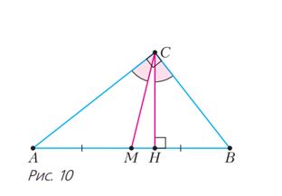 CM միջնագիծը և CH բարձրությունը, որտեղ H կետը գտնվում է AB հատվածի վրա։