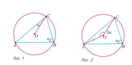 Իրոք, ներգծված անկյունը հավասար է նույն աղեղին հենված կենտրոնական անկյան կեսին (տես նկ. 2), այսինքն՝ եթե ∠ABC=α < 900 ապա ∠AOC=2α, ուստի ∠ACO=900 − α ։