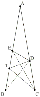 E-ն եռանկյուն CDT-ի առգծված շրջանագծի կենտրոնն է, hետևաբար, DE հատվածը եռանկյան D անկյան արտաքին անկյան կիսորդն է։ Բացի այդ, ∠BDT = ∠DBT = 30°։