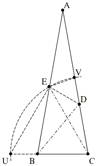 Տանենք EC շառավղով շրջանագիծ, որը BC կողմը կհատի U կետում, իսկ AC կողմը՝ V կետում։
