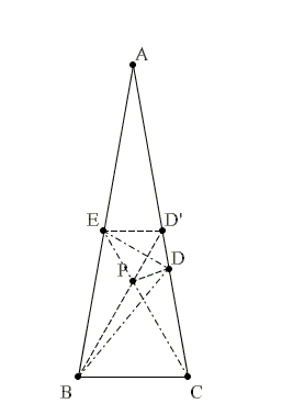 Այսպիսով, ∠DD’P = 40°, եռանկյուն DPD’ հավասարասրուն է և DP = DD’. Այսինքն՝ ΔEPD’ հավասարակողմ է, EP = ED’։