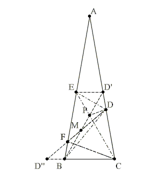 Այժմ դիտարկենք արտապատկերումը CM ուղիղի նկատմամբ։ D-ն արտապատկերվում է B-ի վրա, իսկ P-ն՝ F-ի վրա։ Թող D′-ն արտապատկերվի D′′-ի վրա, և D′′- ը կընկնի BC-ի շարունակության վրա։