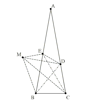 Քանի որ եռանկյուն BCD-ն հավասարասրուն է (BC = CD), ապա CM-ը BD հատվածի միջնուղղահայացը կլինի, այսինքն՝ BM = DM։ M կետի ընտրությունից հետևում է, որ ∠DBM = 60°, ուստի եռանկյուն BDM-ը հավասարակողմ է։ Քանի որ BE-ն ∠DBM-ի կիսորդն է, այն նաև DM հատվածի միջնուղղահայացն է։