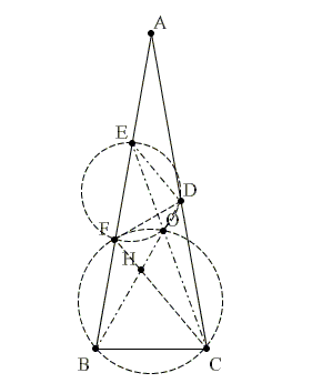 Դիցուք О կետը BD և CE հատվածների հատման կետն է, իսկ H ը՝ BD և CF հատվածների։ Այստեղից էլ ∠FBO = ∠FCO = 20°, քառանկյուն BCOF -ը ներգծված է շրջանագծին, մասնավորապես ∠OFC = ∠ OBC=60°։