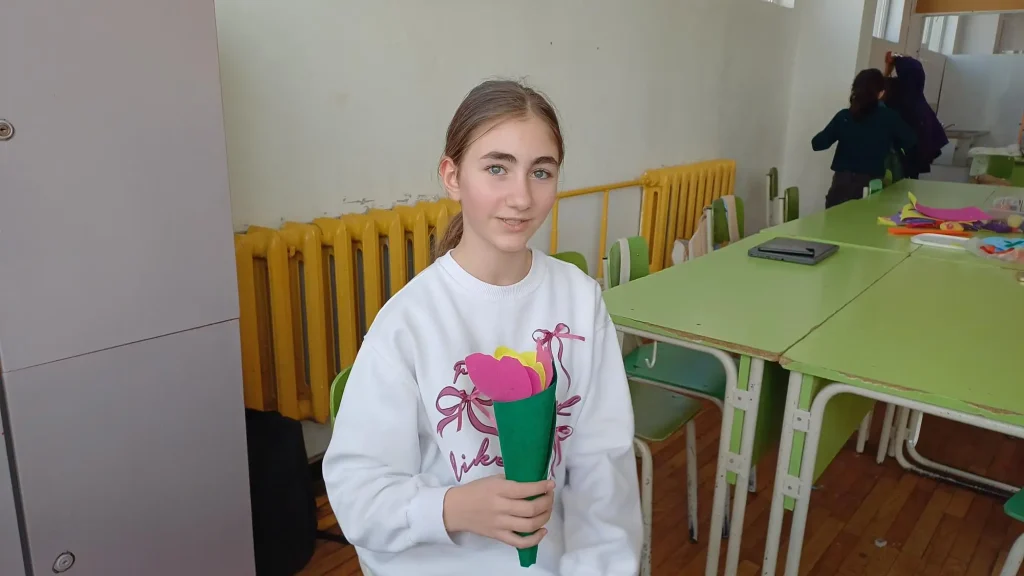 Մանե Հարությունյանն է իր պատրաստած ծաղկեփնջով։ Ահա Մանեի անդրադարձը մեր նախագծին։